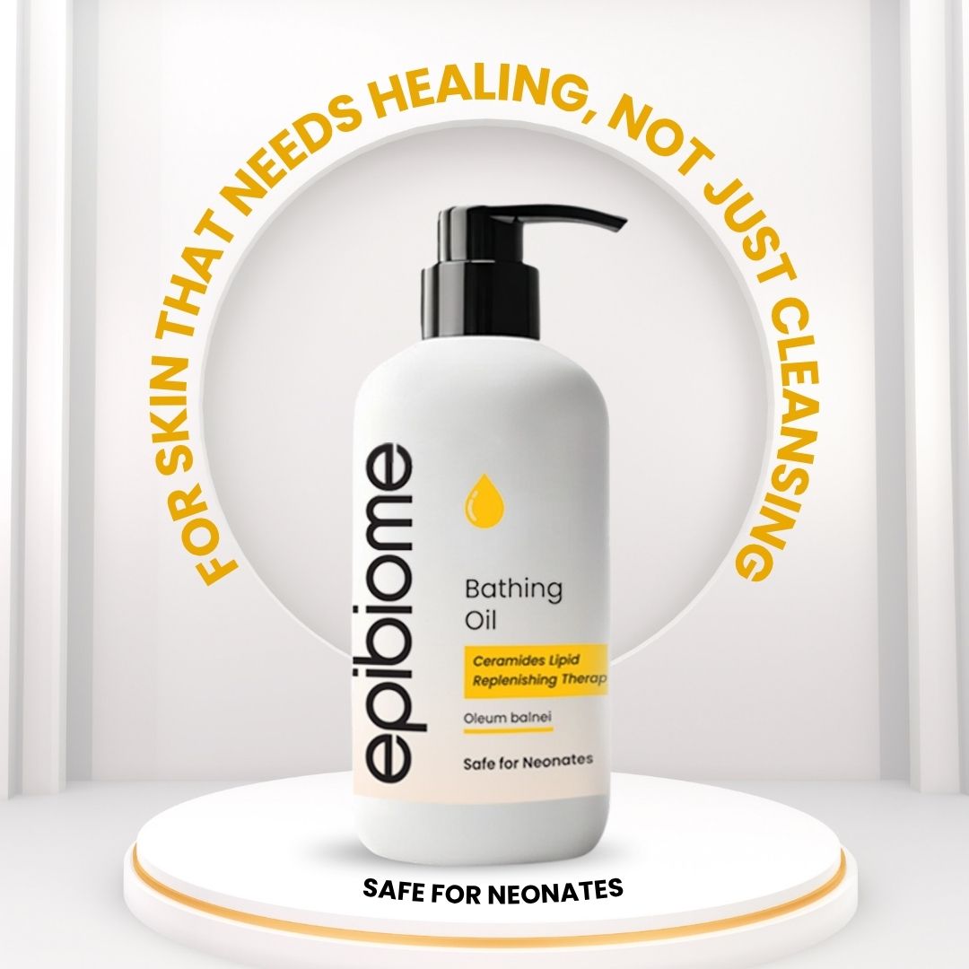 Epibiome™ Bathing Oil is a dermatologically crafted, soap-free bath emollient for dry, itchy, and sensitive skin. Enriched with ceramides, oat oil, sunflower oil, and probiotic ferment extracts, it supports the skin’s lipid barrier and microbial balance while deeply moisturizing and calming irritation. Whether used in bathwater or directly on damp skin, it hydrates without greasiness and cleanses without stripping. Ideal for infants, children, and adults, especially those with eczema, atopic dermatitis, or post-procedure skin. Epibiome is sulfate-free, paraben-free, colorant-free, and suitable for daily use from birth onward.