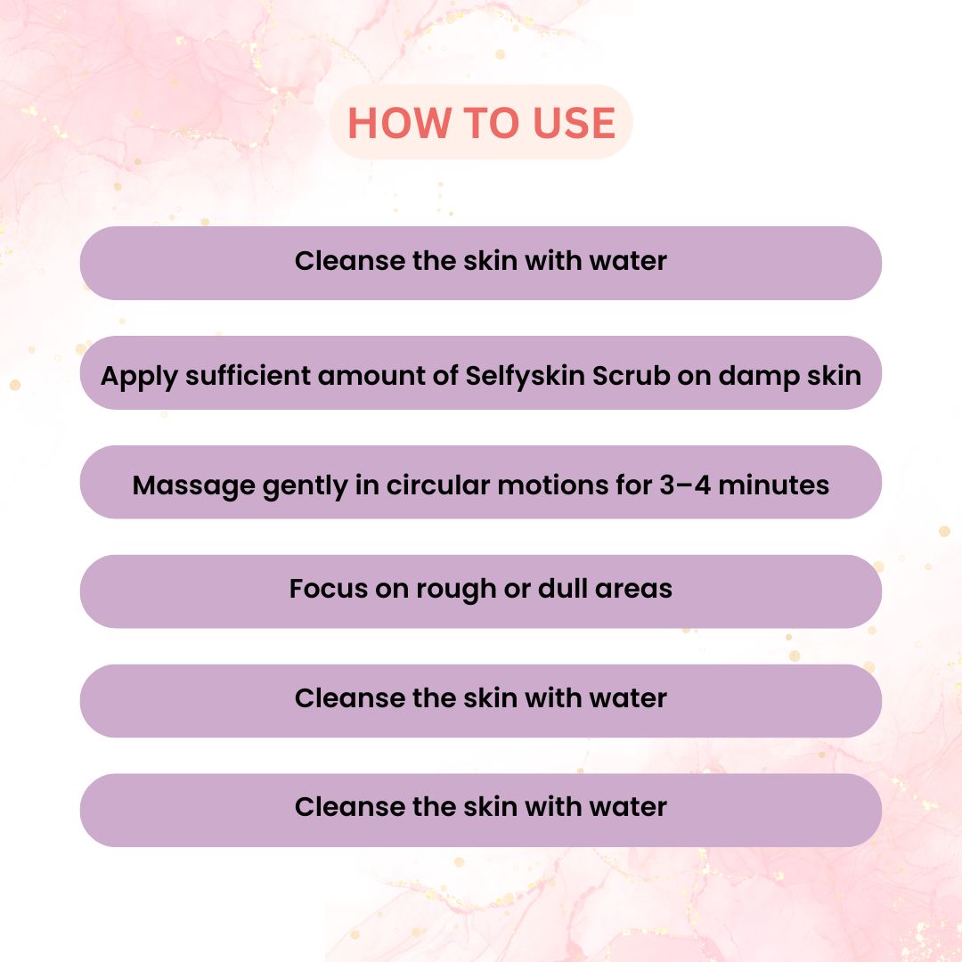 SelfySkin Scrub Derma Medifacial combines physical exfoliation with nourishing ingredients to help cleanse, smooth, and refresh the skin. The formulation works effectively on dull, rough areas while maintaining skin softness. Designed for face and body use, it supports regular exfoliation and skin rejuvenation.